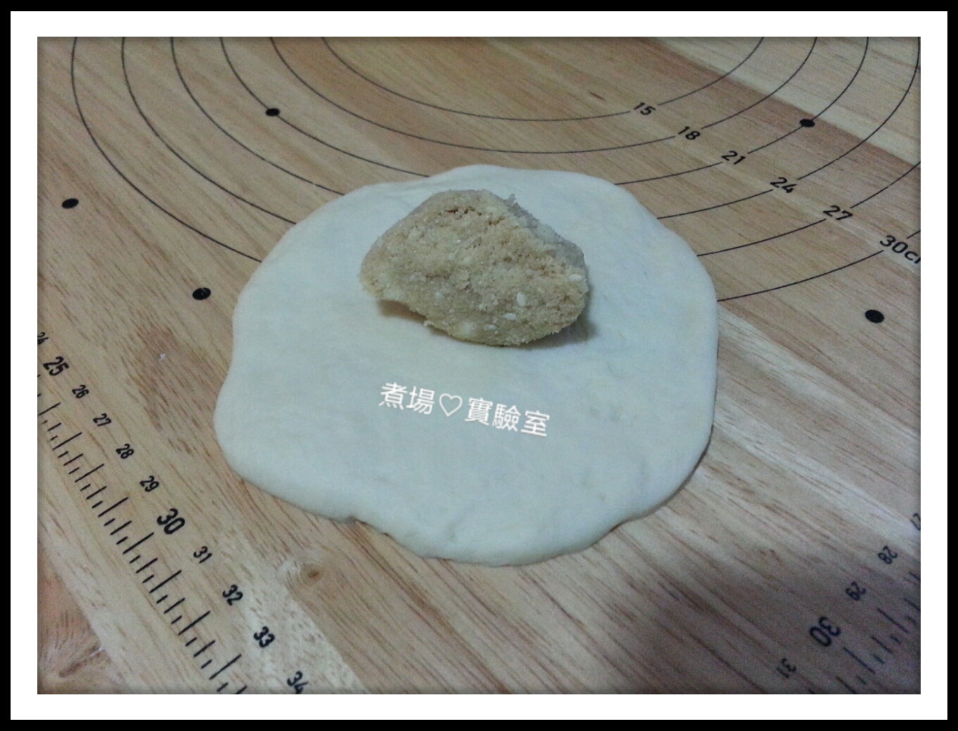 麵糰再搓2mins,再滾圓等5mins,分4份,擀平包餡,收口一定要捏實,以防爆口